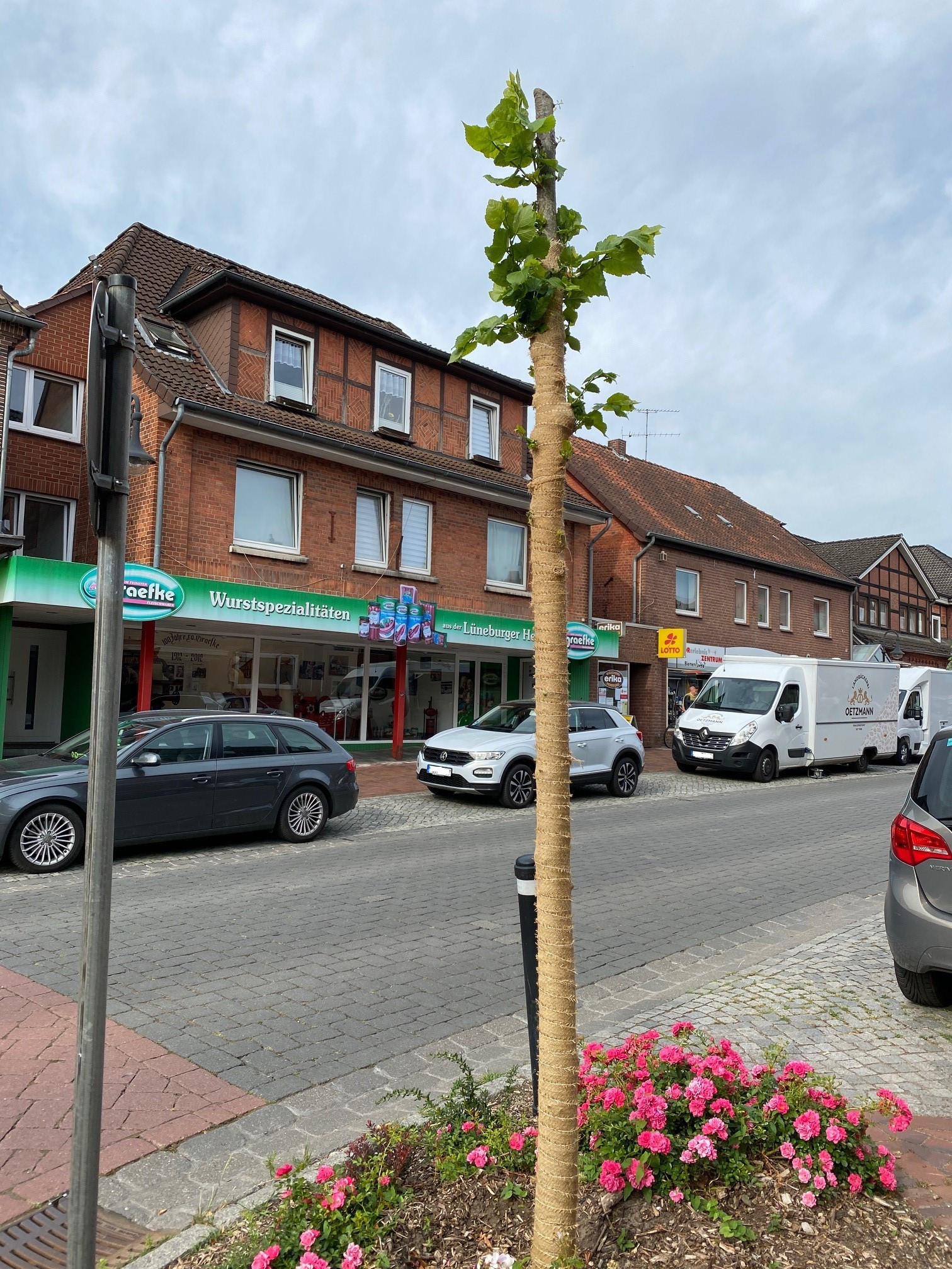Bienenbüttel. Im Frühjahr hat ein Gärtnermeister die Linden an der Bienenbütteler Bahnhofstraße ehrenamtlich zurückgeschnitten und mit einem Baumschutzband umwickelt. Die Bäume waren im Zuge der Erneuerung der Bahnhofstraße gesetzt worden – allerdings nicht fachmännisch. Durch den Rückschnitt Anfang des Jahres können die Bäume entgegen so mancher Bedenken nun besser wachsen. (Fotos: Gemeinde Bienenbüttel)
